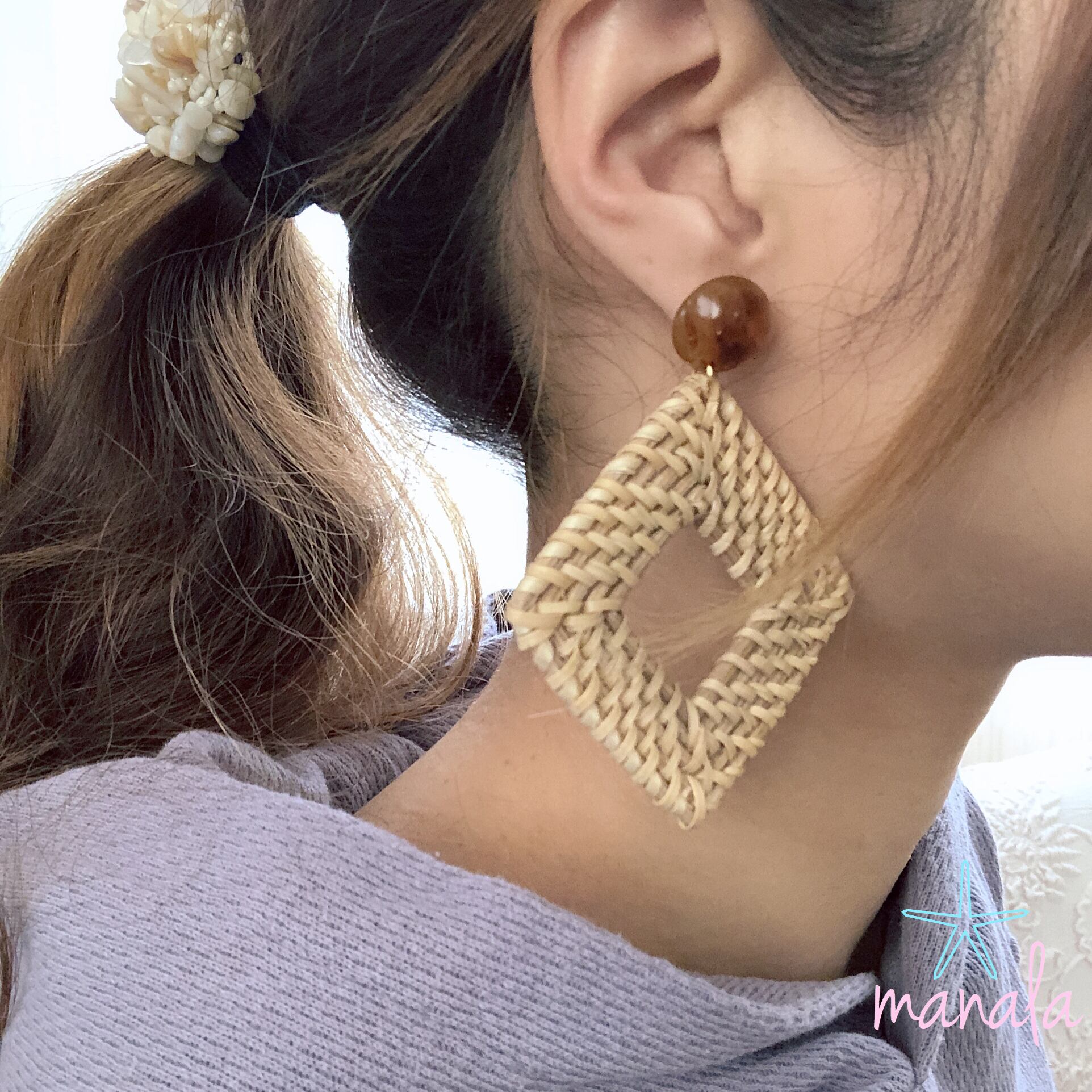 大きめのスクエアラタンですが大人っぽく付けて頂けます。